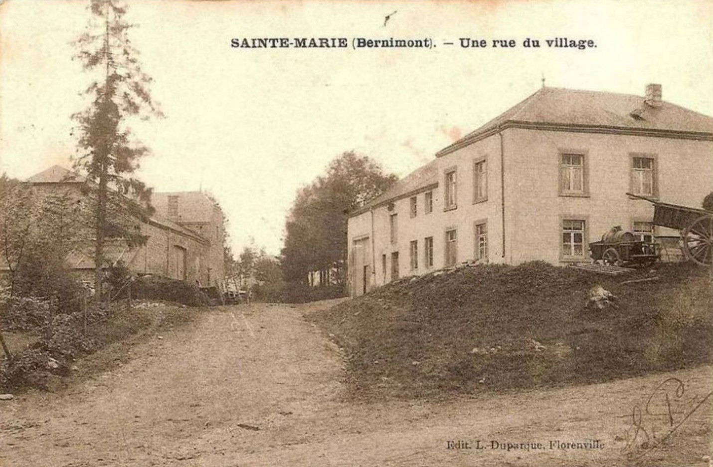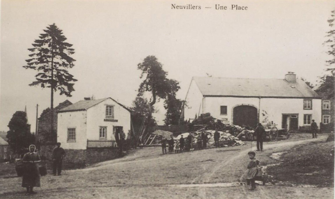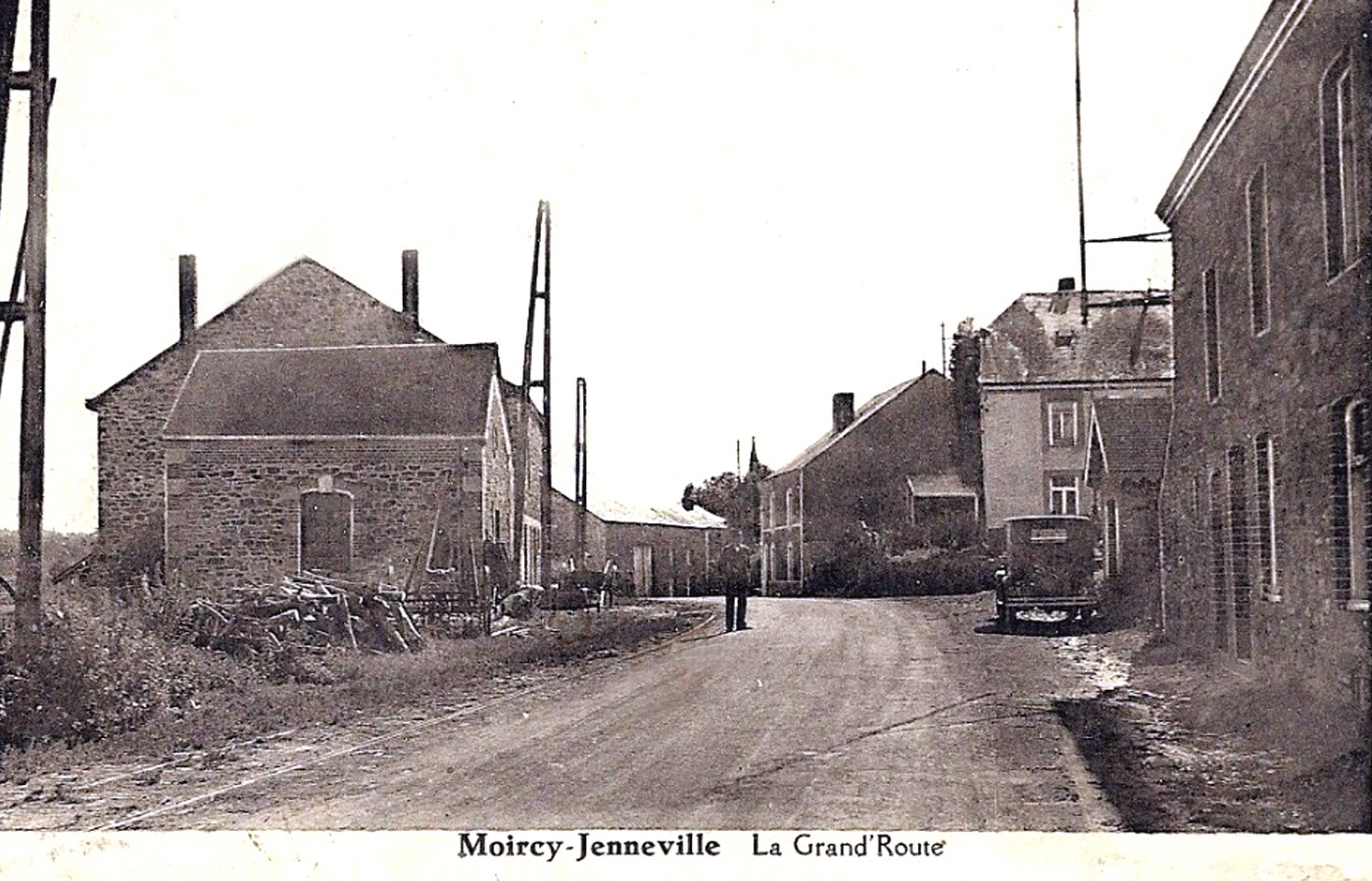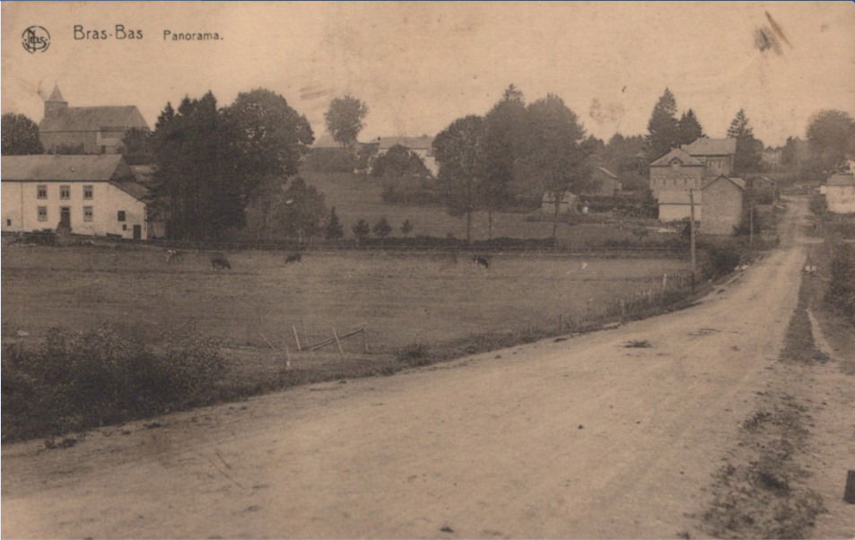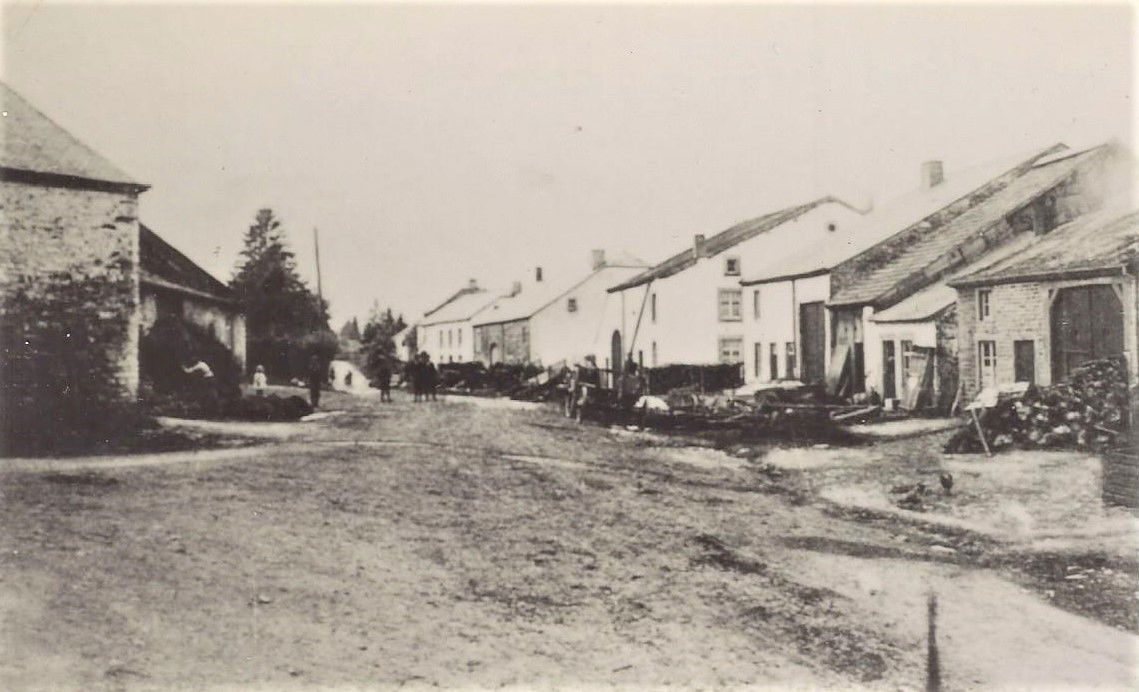 Photo datant de +/-1900 A droite, c'était chez Goosse, ancien local du foot et en face est né le papa de Thérèse Verlaine justement en 1900 Au fond, c'était la ferme d'Adolphe Bauvir.