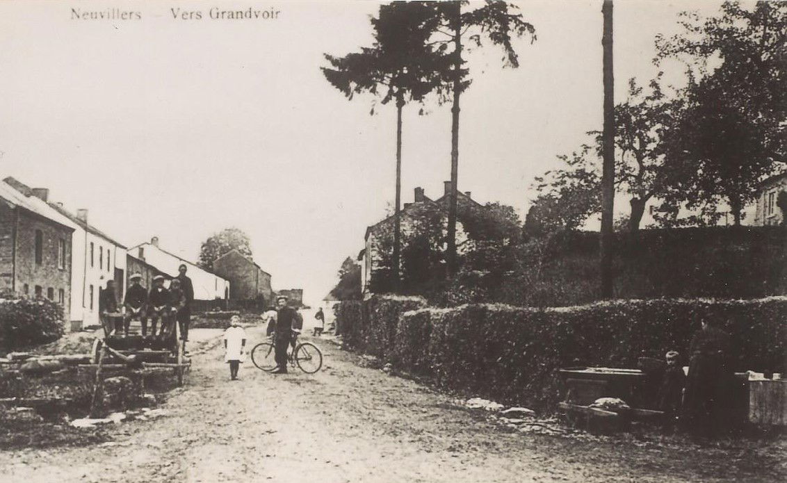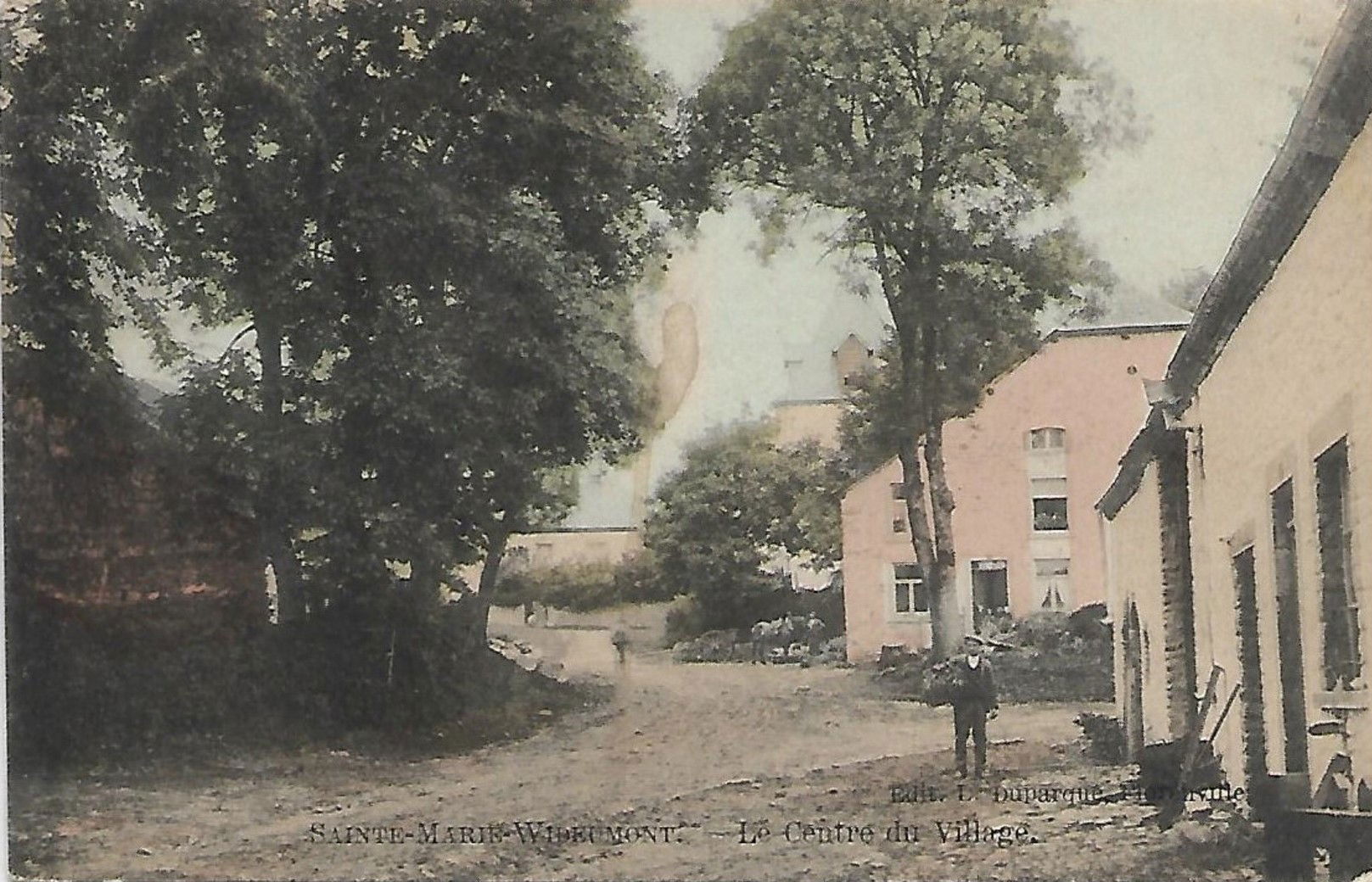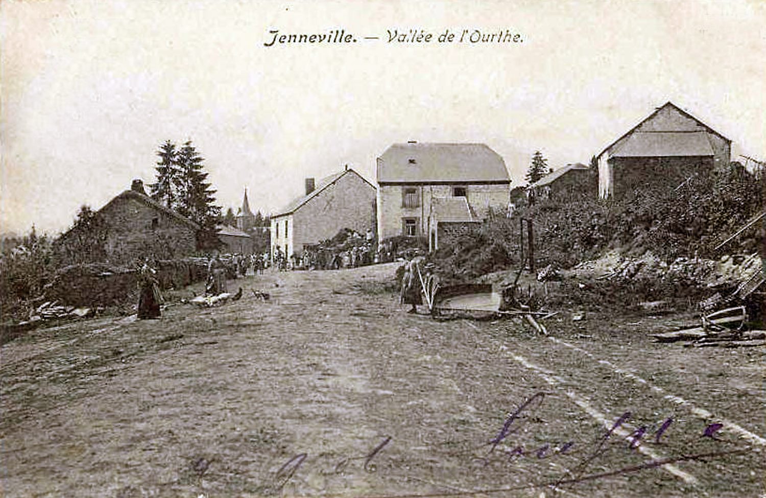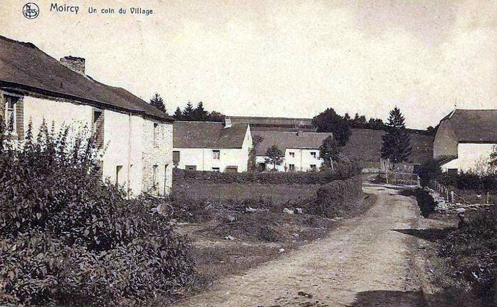 Photo datant de +/-1900 A droite, c'était chez Goosse, ancien local du foot et en face est né le papa de Thérèse Verlaine justement en 1900 Au fond, c'était la ferme d'Adolphe Bauvir.
