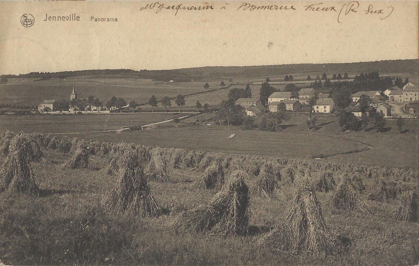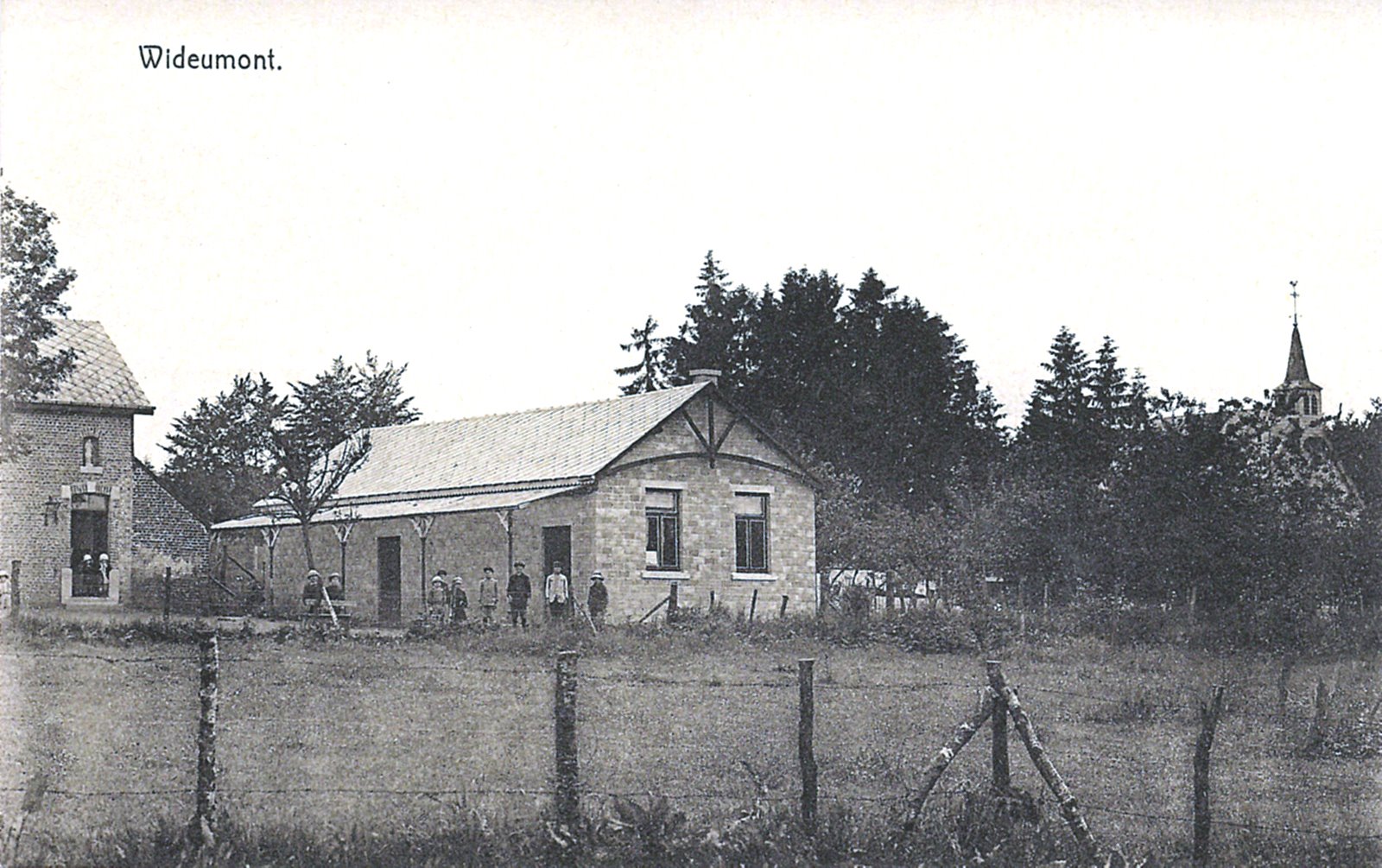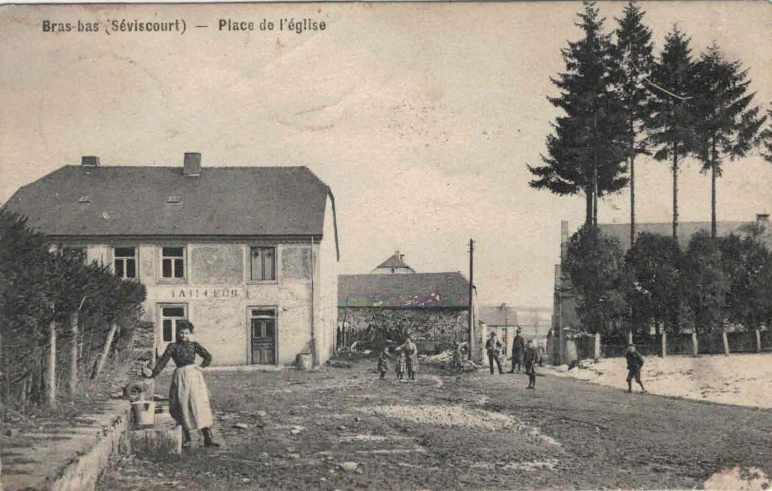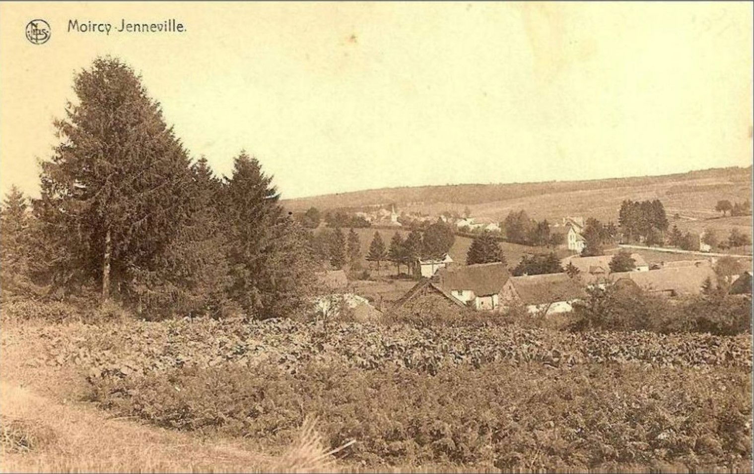 Photo datant de +/-1900 A droite, c'était chez Goosse, ancien local du foot et en face est né le papa de Thérèse Verlaine justement en 1900 Au fond, c'était la ferme d'Adolphe Bauvir.