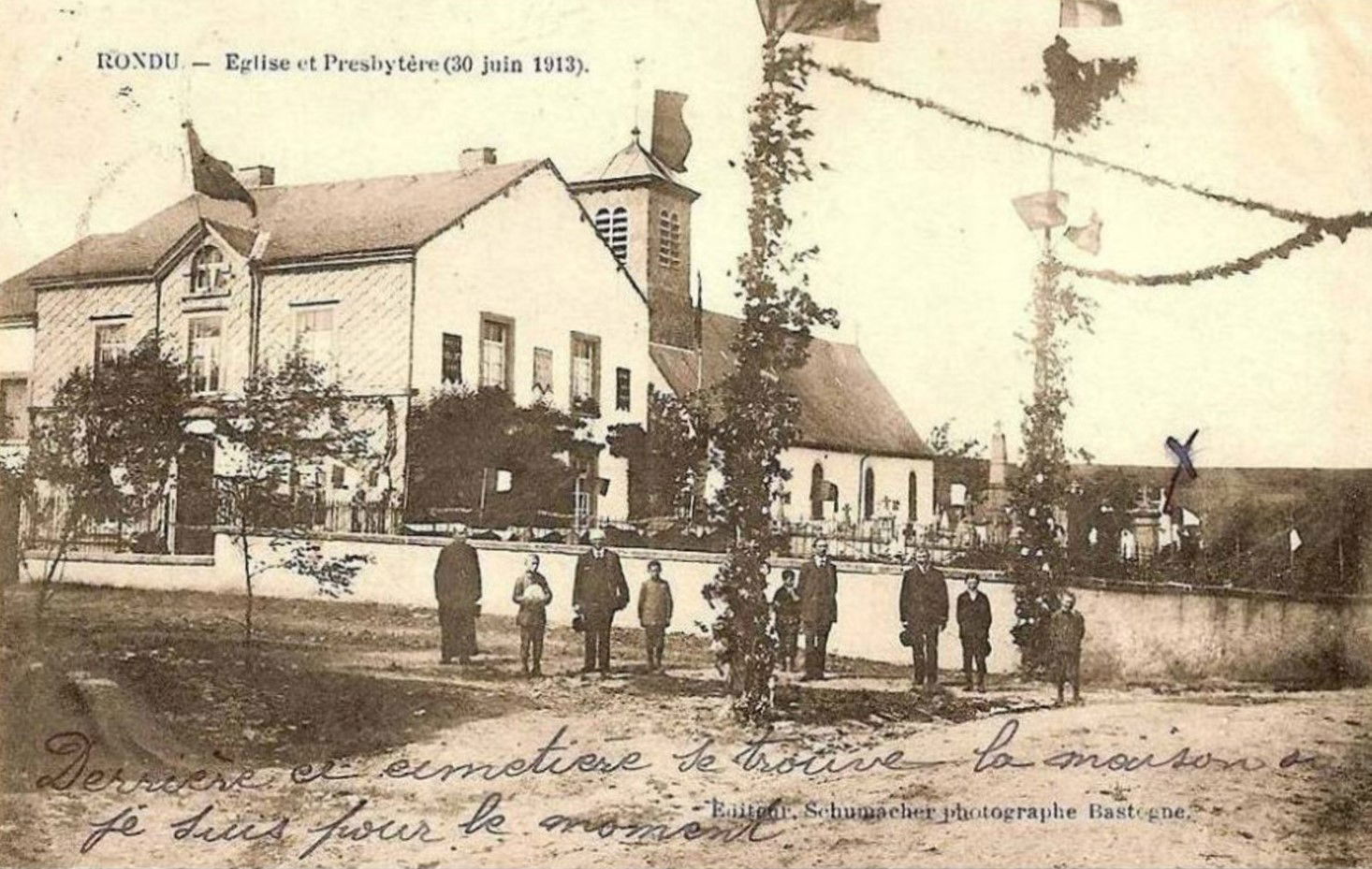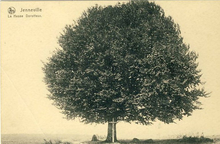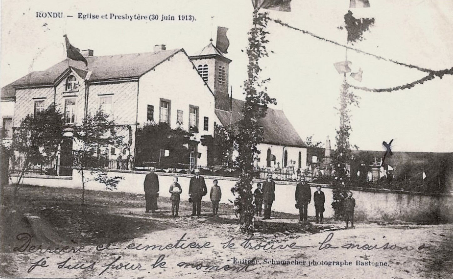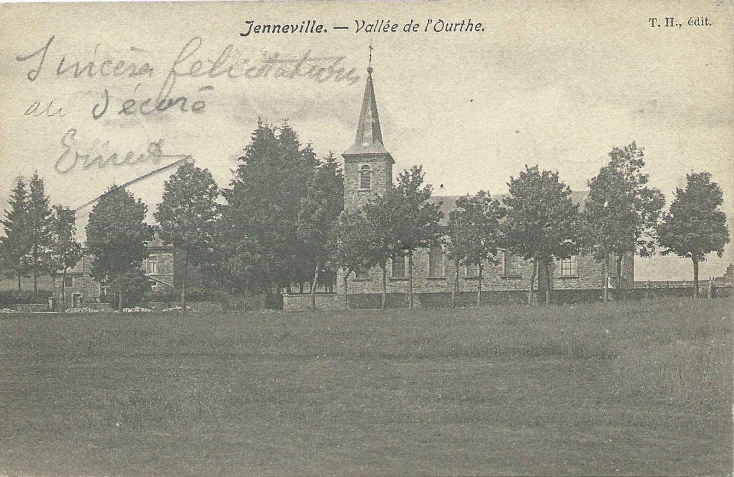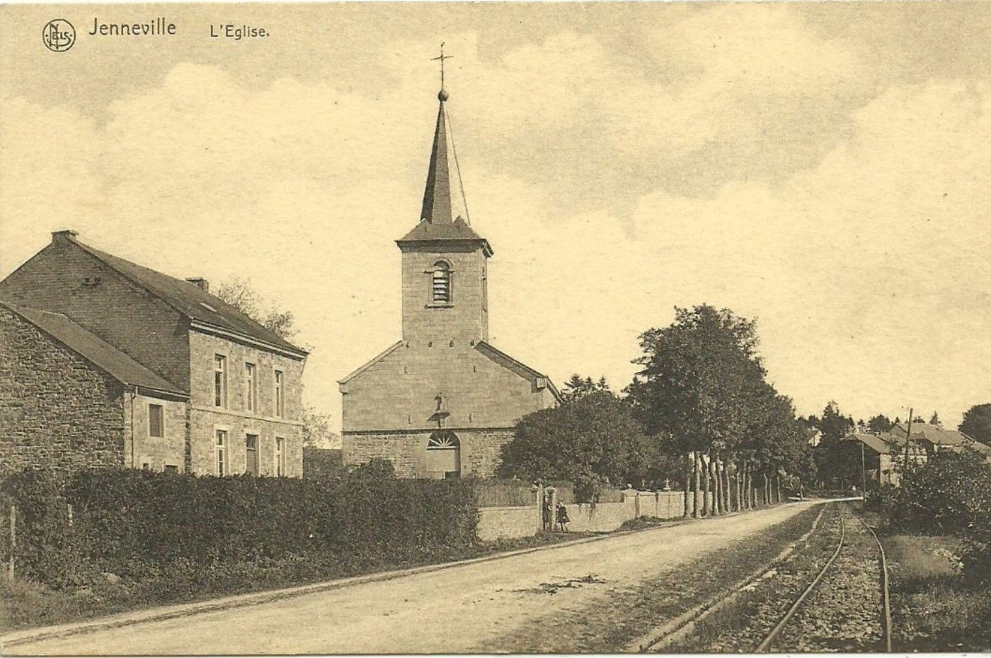 Photo datant de +/-1900 A droite, c'était chez Goosse, ancien local du foot et en face est né le papa de Thérèse Verlaine justement en 1900 Au fond, c'était la ferme d'Adolphe Bauvir.