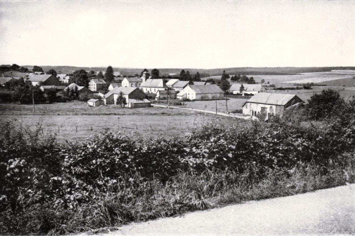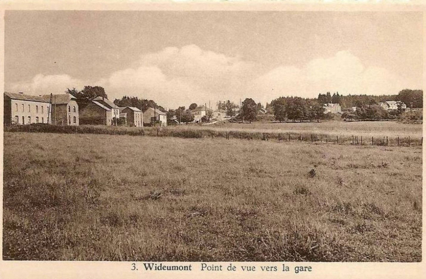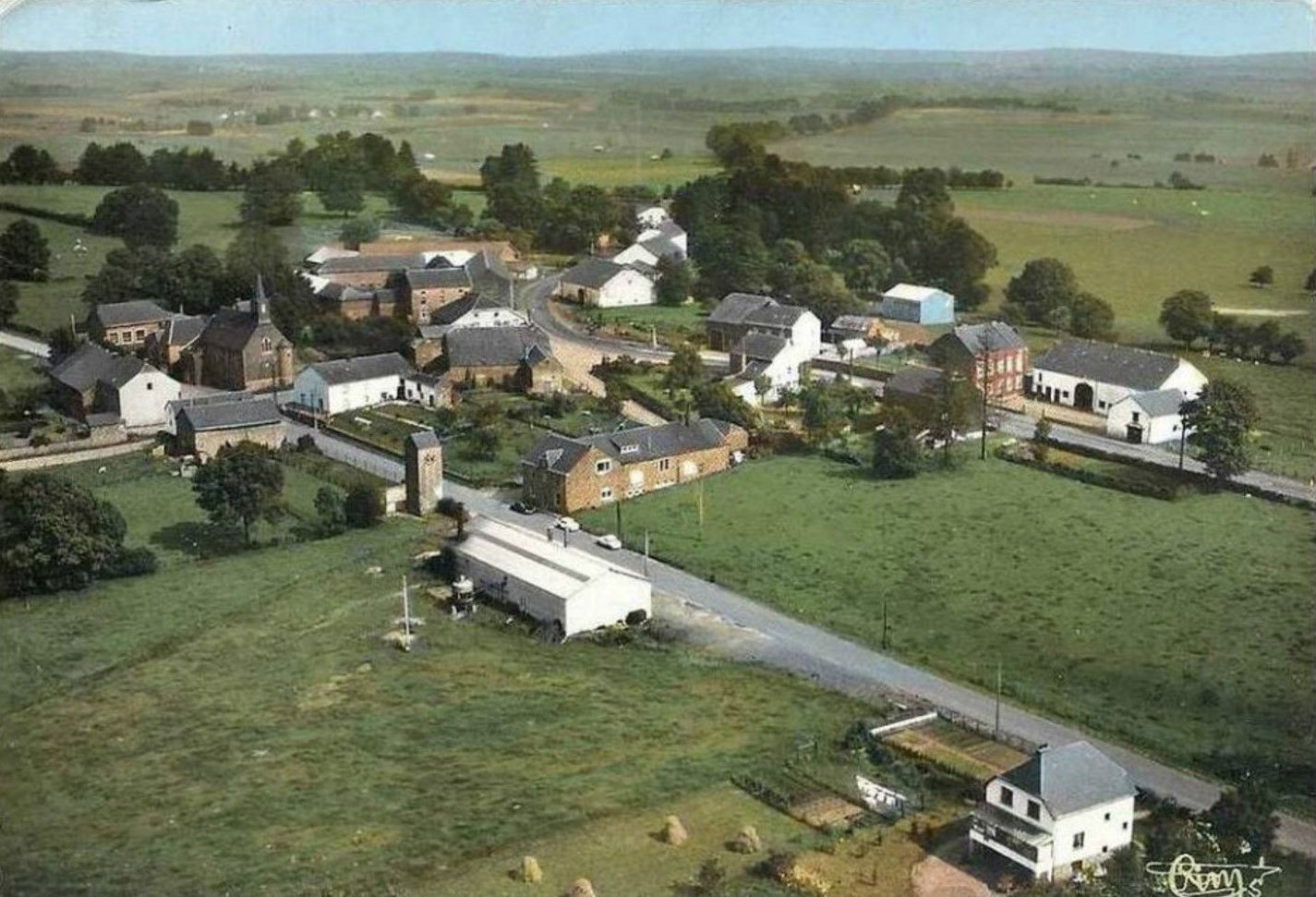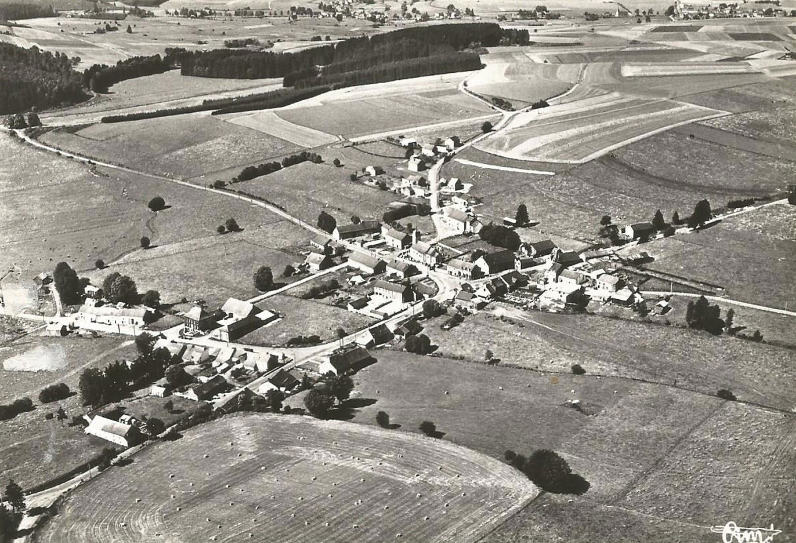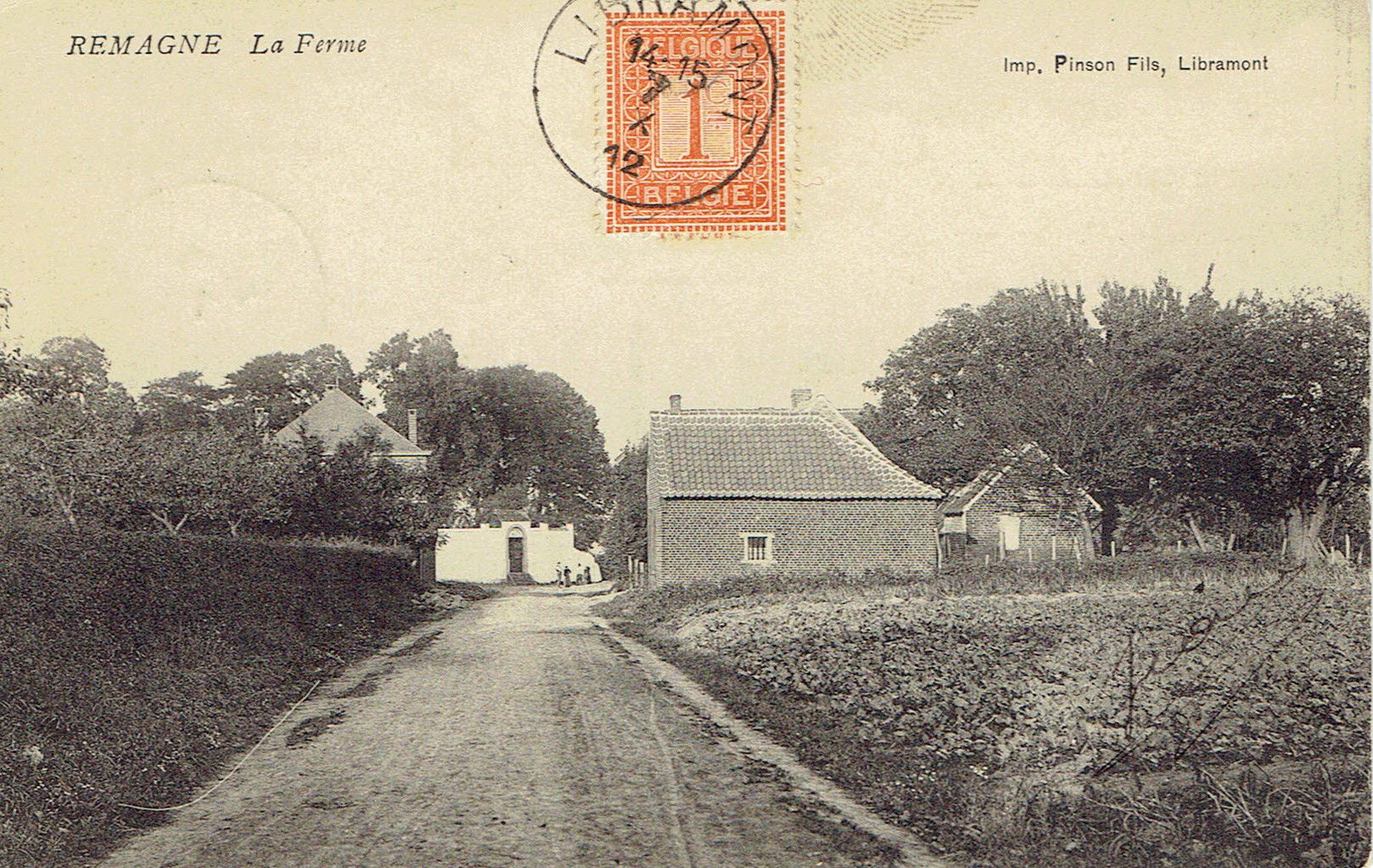 C'est la ferme de Jules Rosiere que l'on aperçoit en 1er Il y avait une "carrière" à l'arrière-plan à gauche. On allait y déverser tout ce qu'on met au parc à containers actuellement C'est la route qui vient de Freux en passant par l'étang de la Grotte. La route qui passe à coté du petit hangar, à gauche, conduit à l'ancienne carrière de Freux, dite carrière de la Hazlette. De là, on descend vers la rue du Moulin à Freux-Menil.