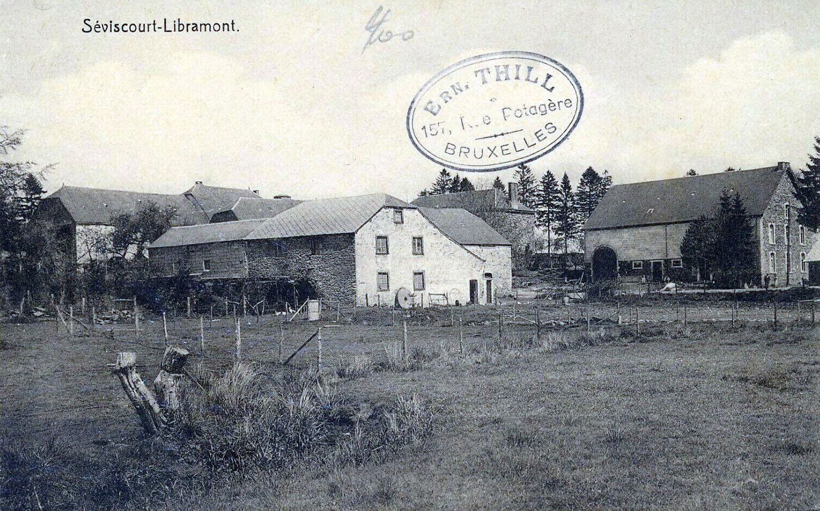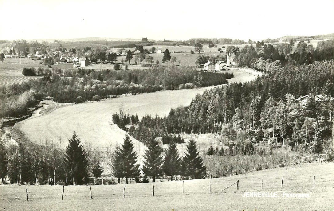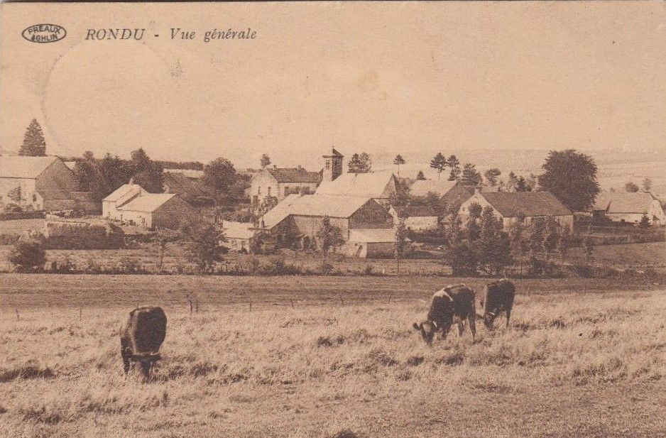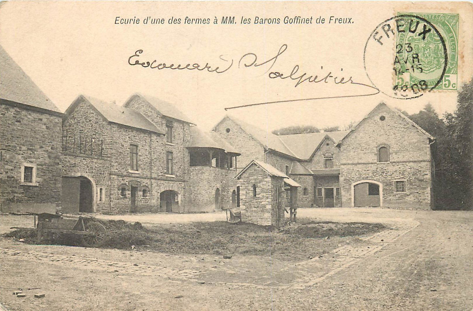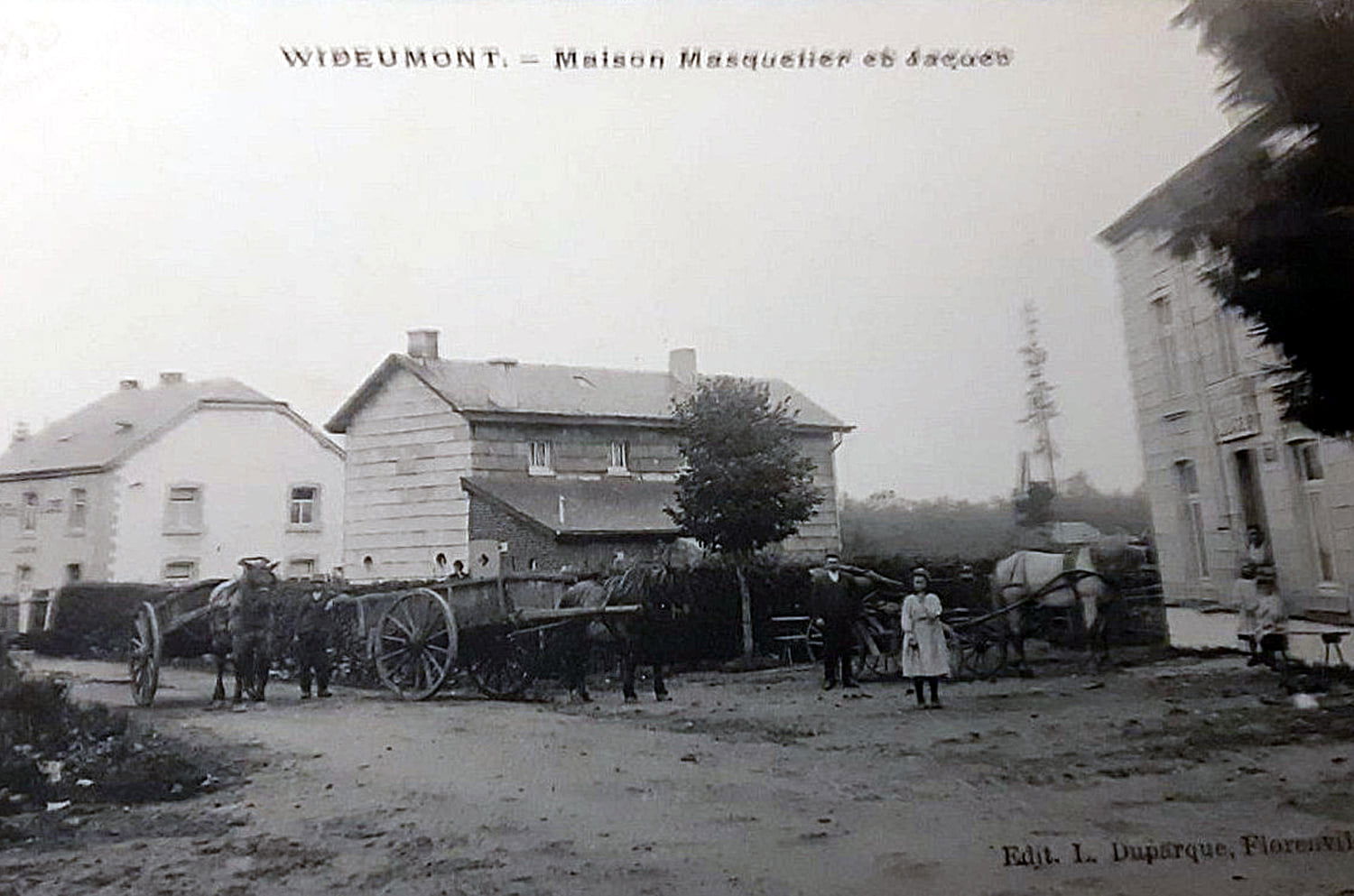 C'est la ferme de Jules Rosiere que l'on aperçoit en 1er Il y avait une "carrière" à l'arrière-plan à gauche. On allait y déverser tout ce qu'on met au parc à containers actuellement C'est la route qui vient de Freux en passant par l'étang de la Grotte. La route qui passe à coté du petit hangar, à gauche, conduit à l'ancienne carrière de Freux, dite carrière de la Hazlette. De là, on descend vers la rue du Moulin à Freux-Menil.