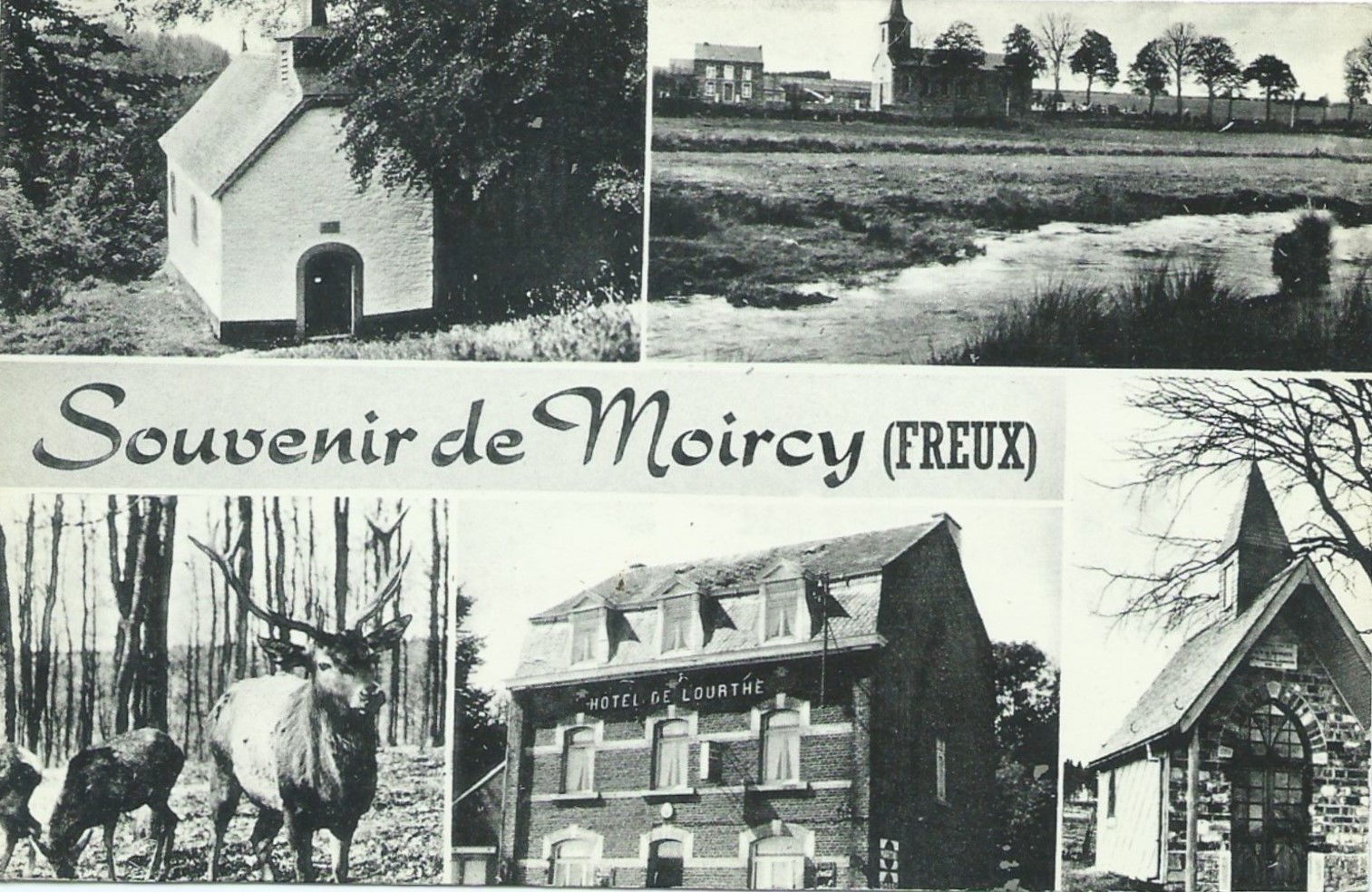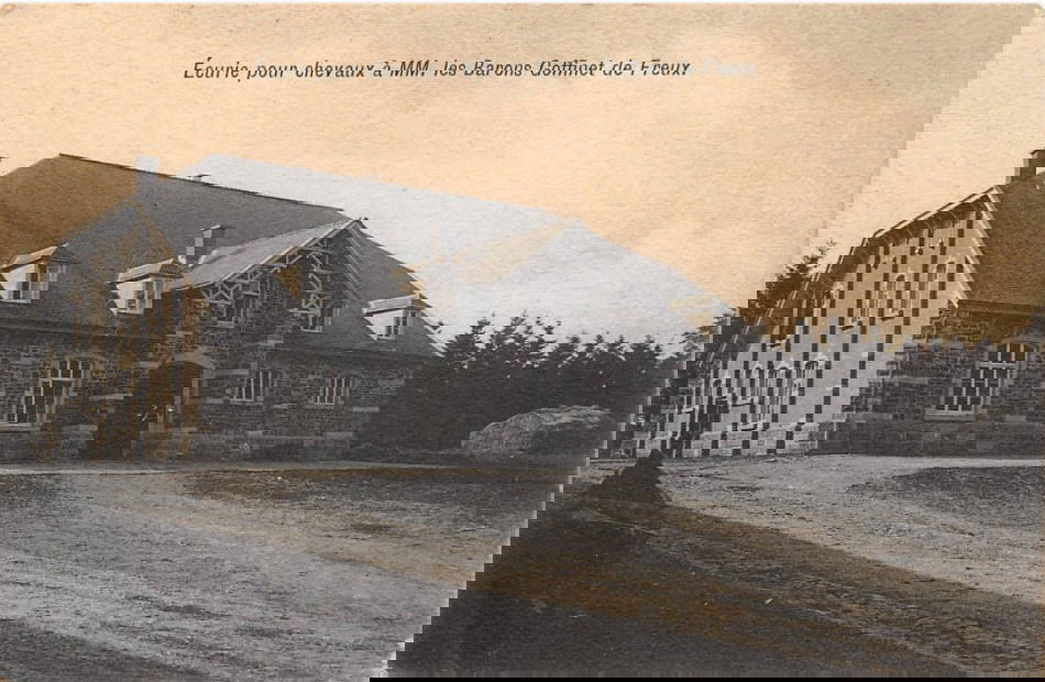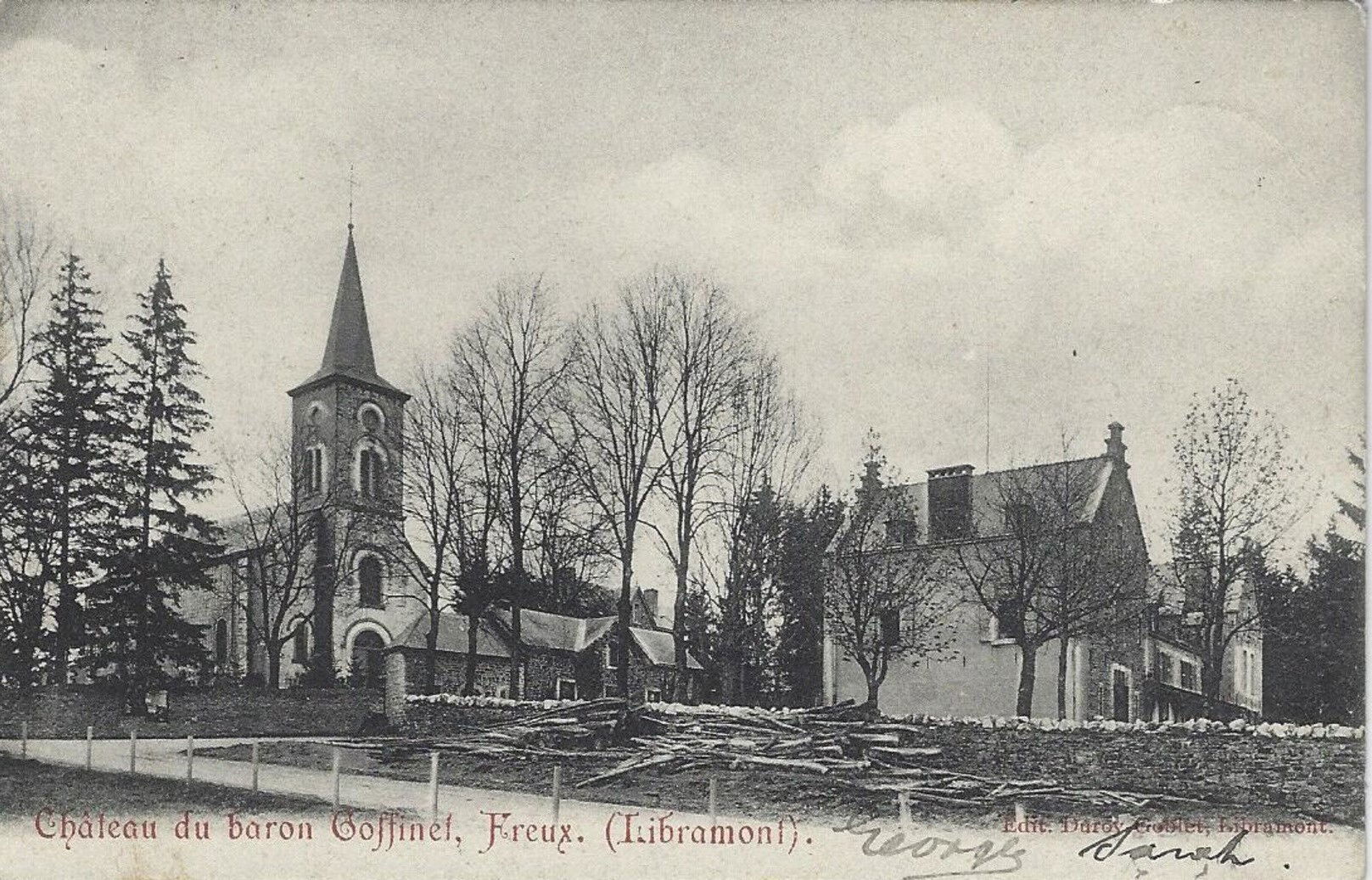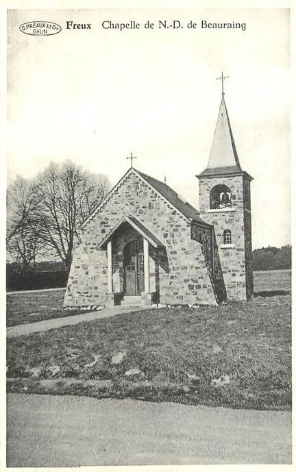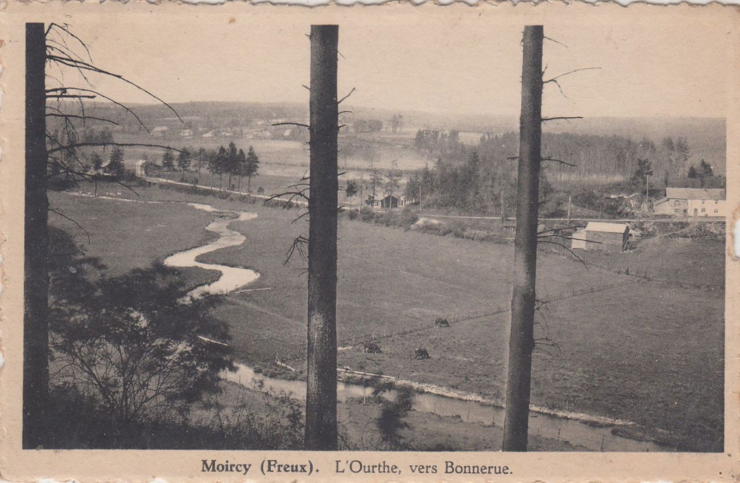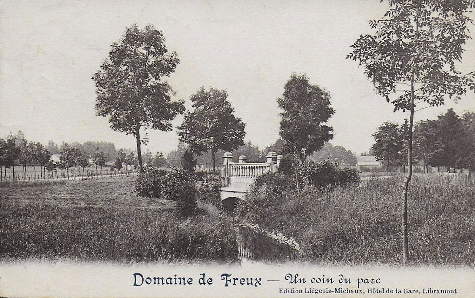 C'est la ferme de Jules Rosiere que l'on aperçoit en 1er Il y avait une "carrière" à l'arrière-plan à gauche. On allait y déverser tout ce qu'on met au parc à containers actuellement C'est la route qui vient de Freux en passant par l'étang de la Grotte. La route qui passe à coté du petit hangar, à gauche, conduit à l'ancienne carrière de Freux, dite carrière de la Hazlette. De là, on descend vers la rue du Moulin à Freux-Menil.