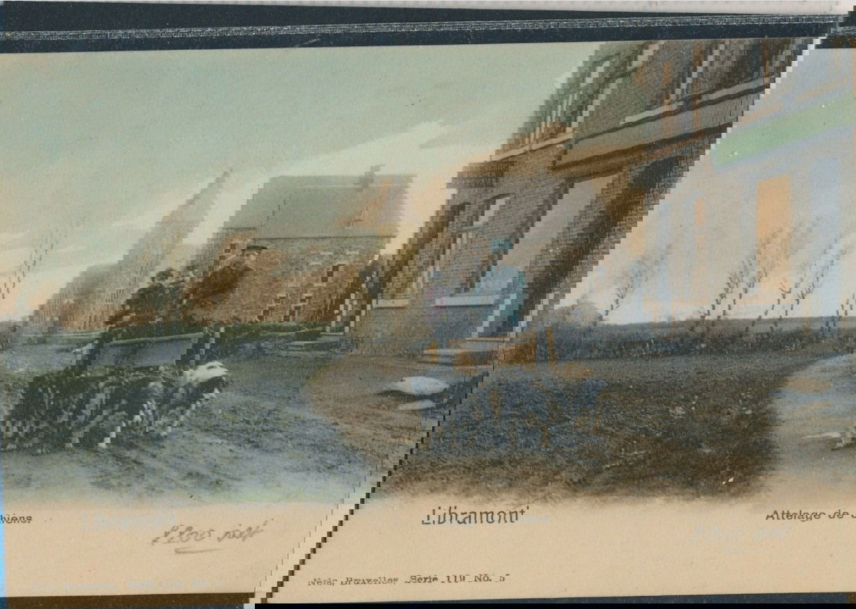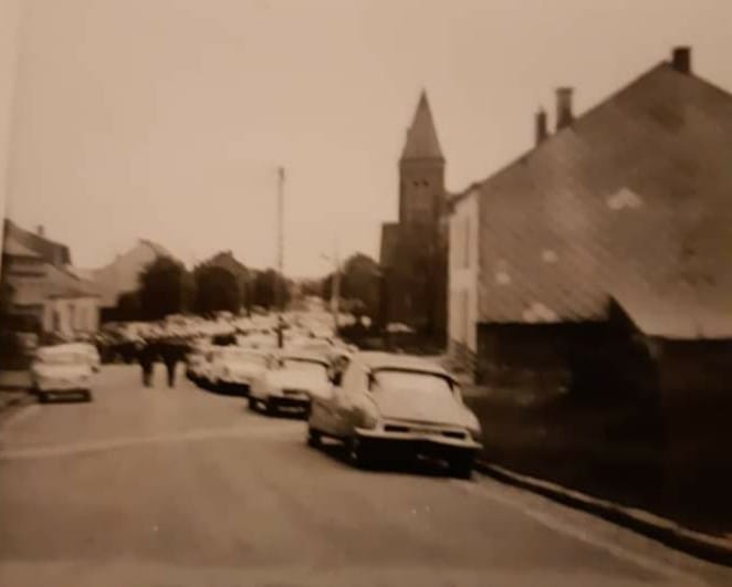 Photo de la rue du village. Remarquez qu'à l'époque il n'y avait pas, comme de nos jours des crayons avec une mine noir mais bien des crayons à l'anyline ( je sais pas si c'est le nom juste ) qui écrivaient bleu et qu'il fallait remouiller avec sa bouche toutes les (5) lignes. Remarquez sur la photo ,qu'il a fallut "remouiller le crayon" ! ? PS de Charles Heindrichs: l'anyline est très toxique et il y a eu beaucoup de maladies due à ce produit chimique proscrit aujourd'hui depuis les années 50,60