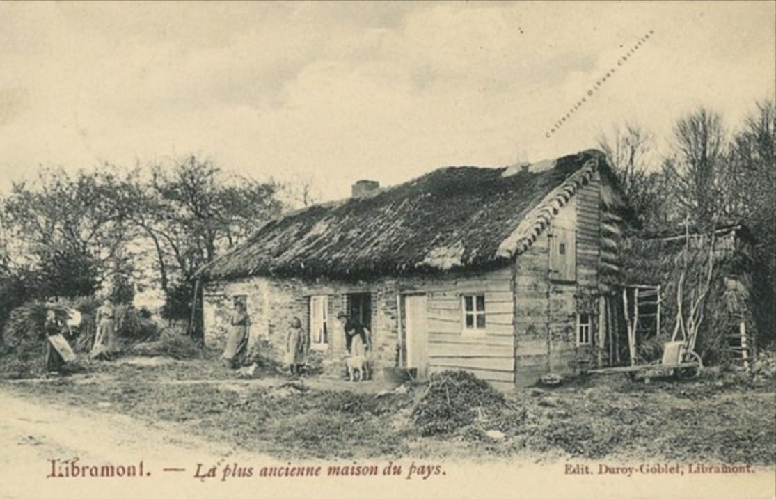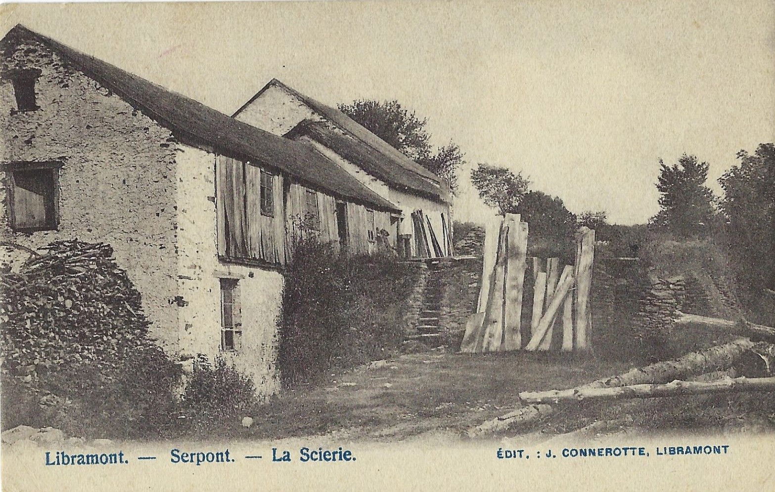 En 1902 Construction de la route du Serpont par l'entrepreneur libramontois Jean-Baptiste Raty. On distingue au loin le croisement avec l'actuelle rues Haynol et Aux Ailleux. Plus loin encore, la maison Du "Blan du Cou" Les casseurs de cailloux, un travail pénible qui consistait à casser des blocs de pierres en petits cailloux à l'aide d'un maquet.