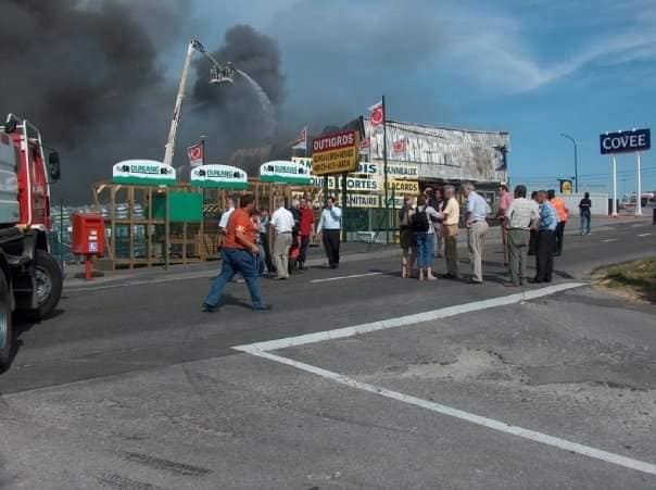La menuiserie en arrière-plan était au départ la menuiserie de Theogene Fourny. On y fabriquait entre autres des cercueils. Sur la photo, le père de Florent ancien pompes funèbres avant Chenot